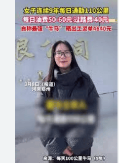 在河南,董女士 的故事吸引了无数人的注意。她的月薪只有4640元,但每天上下班要花近100元这一坚持就是九年。这样的选择背后隐藏着怎样的无奈和坚持?也反映了当代职场人的困境?